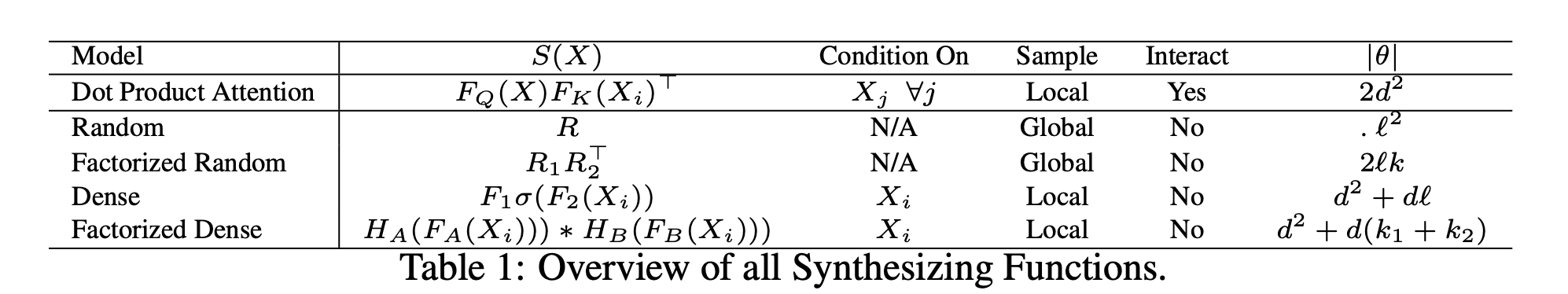 Vanilla Transformer에 사용된 dot-product attention역시 Synthesizer의 한 종류로 생각할 수 있습니다.