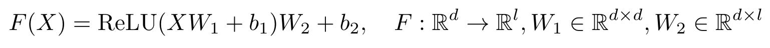 Dense Synthesizer는 기존의 token-token interaction을 모델링하는 dot-product attention을 individual token information을 모델링하는 2-layer feed-forward network으로 바꾼 것을 말합니다. 좀 더 구체적으로, 다음과 같이 정의됩니다. 2-layer feed-forward network (with ReLU activation function)